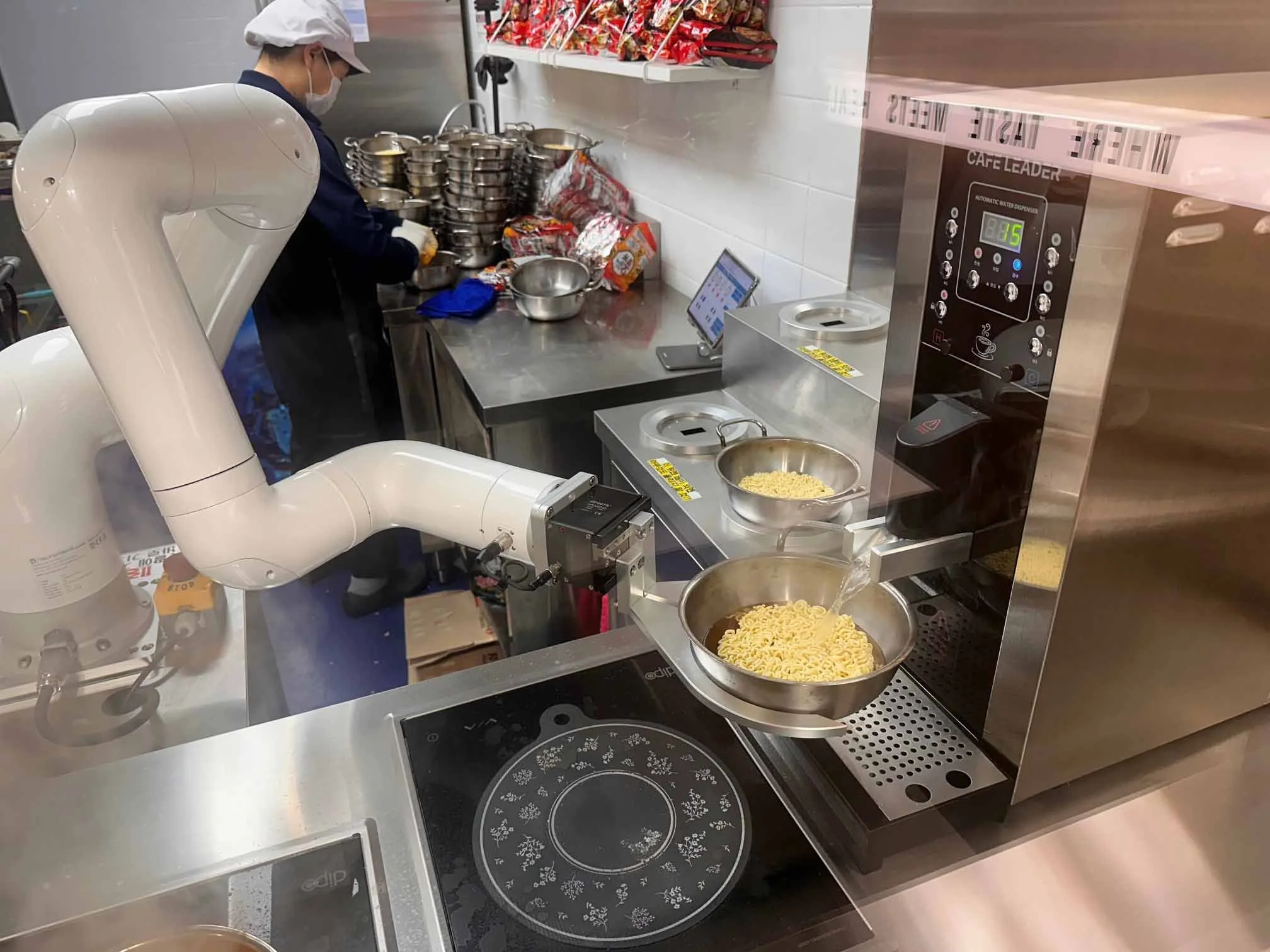 Onze robotica voeren nauwkeurige taken uit zoals snijden, assembleren en koken, wat zorgt voor een hoge mate van consistentie en kwaliteitscontrole. Een goed voorbeeld is onze gerobotiseerde pizzeria, die een verse, ambachtelijke pizza van 12 inch kan bakken in minder dan 3 minuten. Elke stap — van bereiding tot uitgifte — is volledig geautomatiseerd, waardoor snelheid, hygiëne en kwaliteit gegarandeerd zijn.